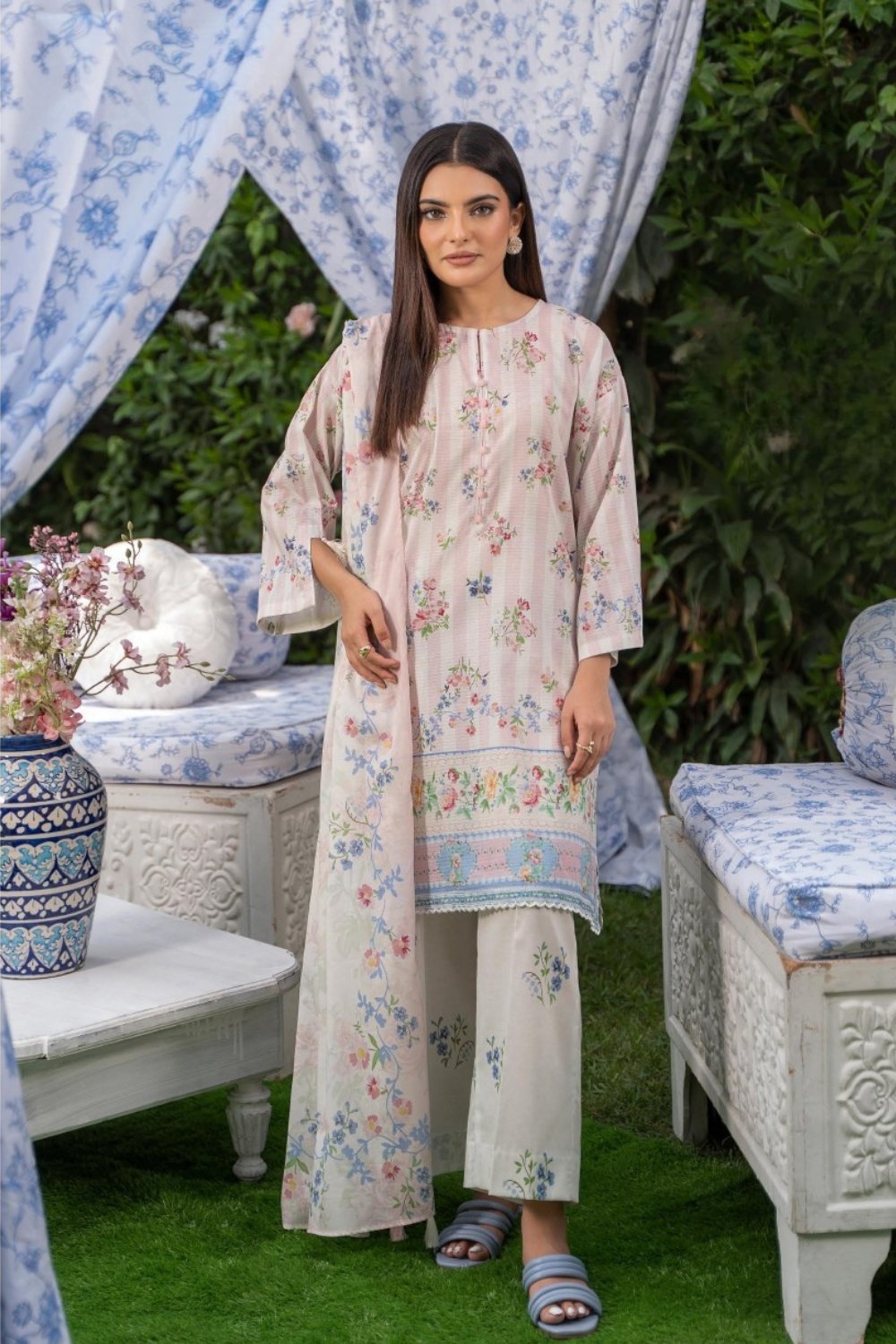 The Gulnisa Unstitched Three-Piece Lawn – BANA DORA Edition is ideal for women seeking stylish, comfortable, and versatile summer outfits. Add these beautifully crafted fabrics to your wardrobe and embrace effortless elegance this season.