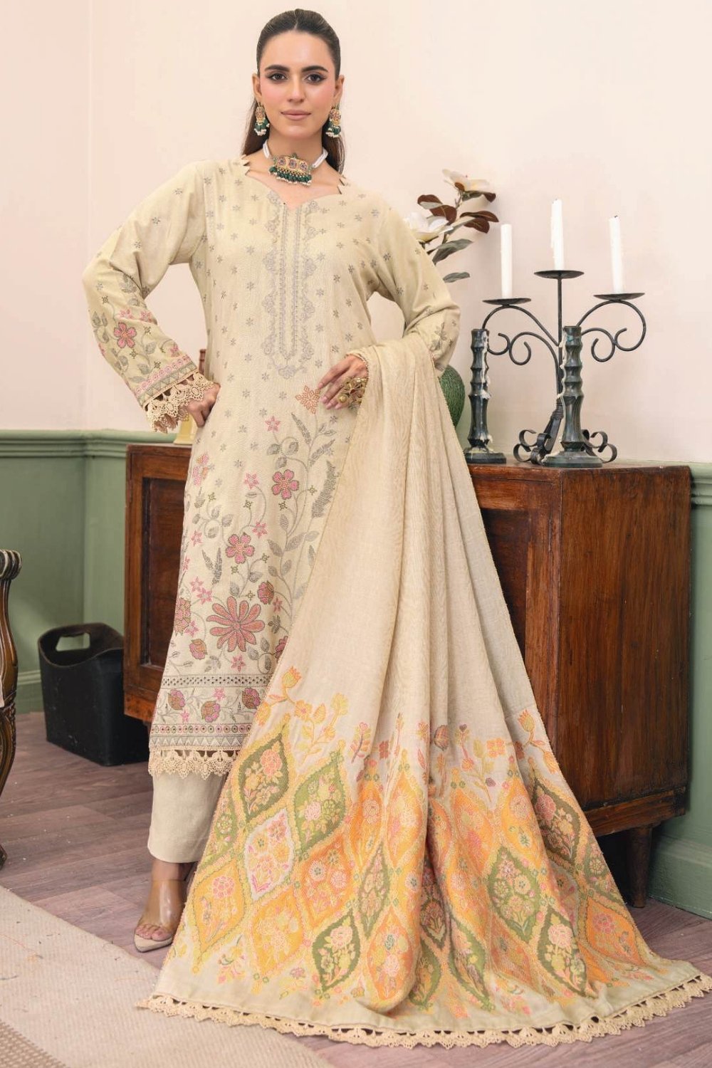 Each outfit is thoughtfully designed to provide the flexibility to style according to your preference. With a focus on comfort, the Gulnisa Winter Embroidered Collection allows you to stay cozy without compromising on fashion.